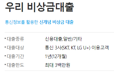 우리은행 비상금대출 정보
