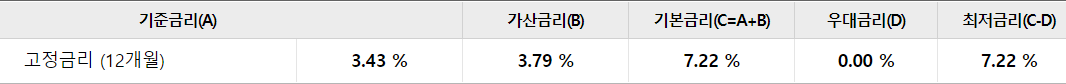 금리는 7.22%로 우대금리를 포함하면 6.902%입니다.