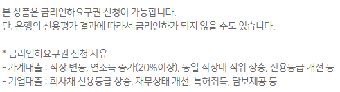 이 상품은 새희망홀씨,햇살론,미소금융,바꿔드림론 등을 이용하고 성실상환한 분들을 위한 상품이며 대출 신청일 현재 아래의 조건을 모두 충족하면 가능합니다.
