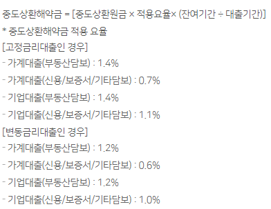중도상환해약금은 대출의 상환 만기일 전에 대출금을 상환할 경우 아래 요율을 적용해 수수료를 내야합니다.