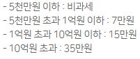 인지세란 대출 거래 신규 약정 시 내는 세금으로 대출금액에 따라 아래와 같이 차등 적용되며 적용된 인지세는 은행과 고객이 각각 50%씩 부담하게 됩니다.