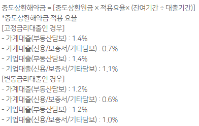 중도상환해약금 요율은 위와 같이 정하며 대출 취급일로부터 3년까지 적용됩니다.