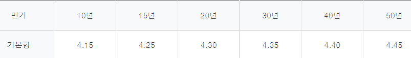 대출기한은 10년,15년,20년,30년,40년,50년까지 가능합니다.