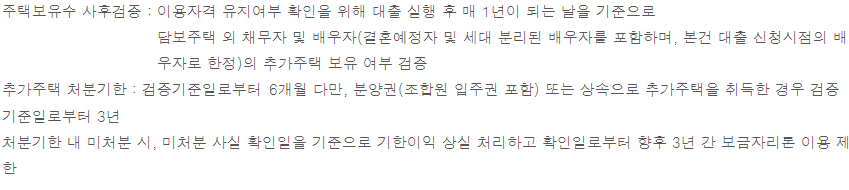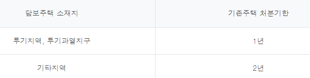 기존주택 처분 기한은 담보주택 소재지에 따라 대출실행일로부터 1년 또는 2년입니다.
