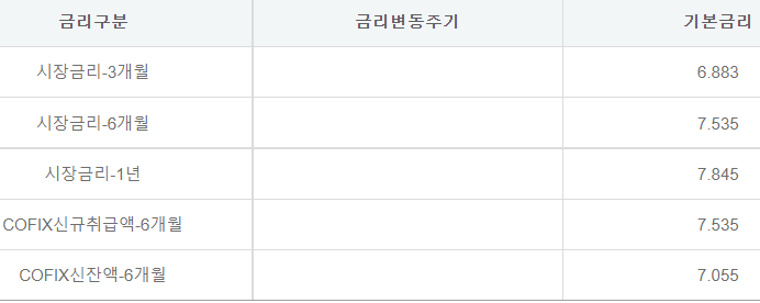 대출금리는 금리구분에 따라 달라지며 아래와 같습니다.