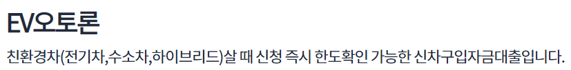 이 상품은 친환경차(전기,수소,하이브리드)살 때 신청 즉시 한도 확인이 가능한 신차구입자금대출입니다.