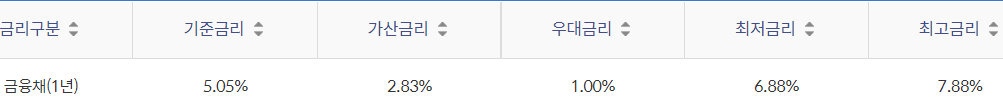 대출금리는 1년 변동금리 상품으로 아래와 같습니다.
