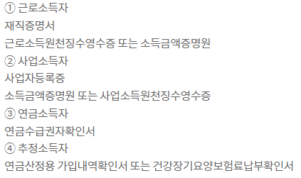대출 진행 시 필요한 서류제출은 소득 유형에 따라 아래와 같이 달라집니다.