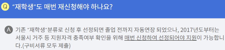 - 소득 8분위 이하의 서울지역 대학생 및 대학원생