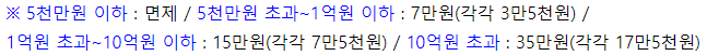 인지세란 대출 거래 신규 약정 시 내는 세금으로 대출금액에 따라 인지세는 아래와 같이 차등 적용되며 적용된 인지세는 은행과 고객이 각각 50%씩 부담하게 됩니다.