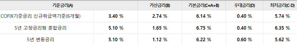 단 대출기간 35년 초과시 5년 변동금리부대출 기준금리만 적용가능합니다.