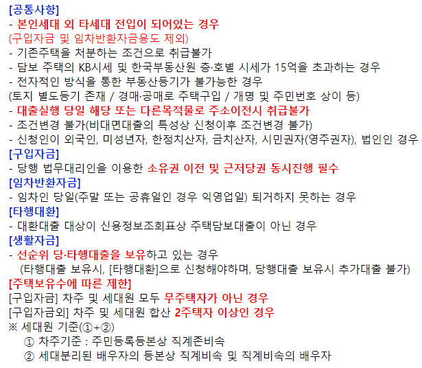 - 제3자 담보제공(단 공동소유자가 배우자인 경우 대출 가능)