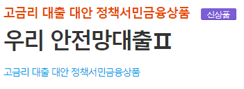 이 상품은 고금리 대출에 대한 대안 정책서민금융 상품으로 기존 고금리 대출 만기 시 대환해주는 대환대출 성격의 상품입니다.