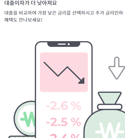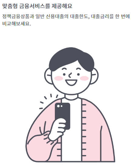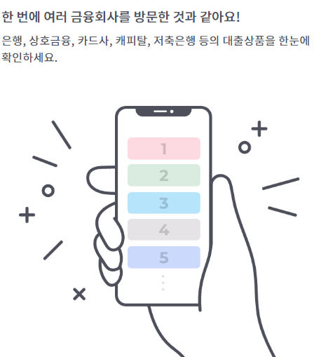 한 번에 여러 금융회사를 방문한 것과 같아요! 은행, 상호금융, 카드사, 캐피탈, 저축은행 등의 대출상품을 한눈에 확인하세요.