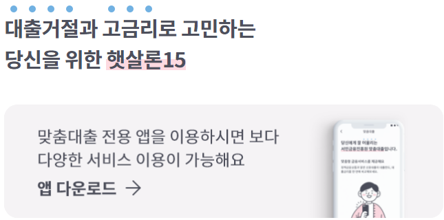 정책서민금융상품(햇살론 15, 햇살론 유스 ,미소금융, 근로자햇살론 등)은 홈페이지 및 스마트폰 앱을 통해 신청 가능합니다.