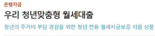 우리은행 청년월세자금대출 조건 한도 금리 신청방법