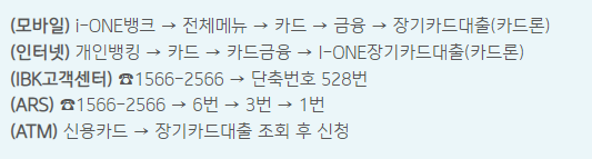 기업은행 장기카드대출 조건 한도 금리 신청방법