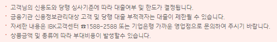기업은행 청년 신용대출 기타사항 및 신청방법