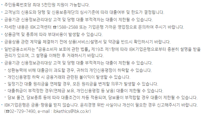 기업은행 소상공인 저금리 대환대출 기타사항 및 신청방법