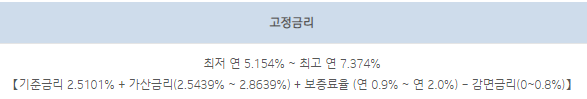 대출금리는 고정금리 상품으로 아래와 같습니다.