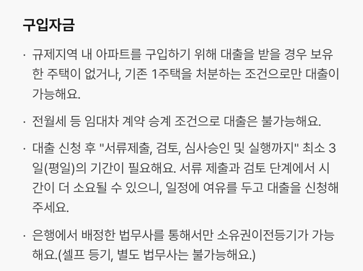 대출한도는 LTV/DTI/DSR 등 규제범위 내에서 아파트 소재지 아파트 시세 ,개인 소득 및 부채현황 등에 따라 차등 적용되며 자금 용도에 따라 아래와 같이 대출 한도가 달라집니다.