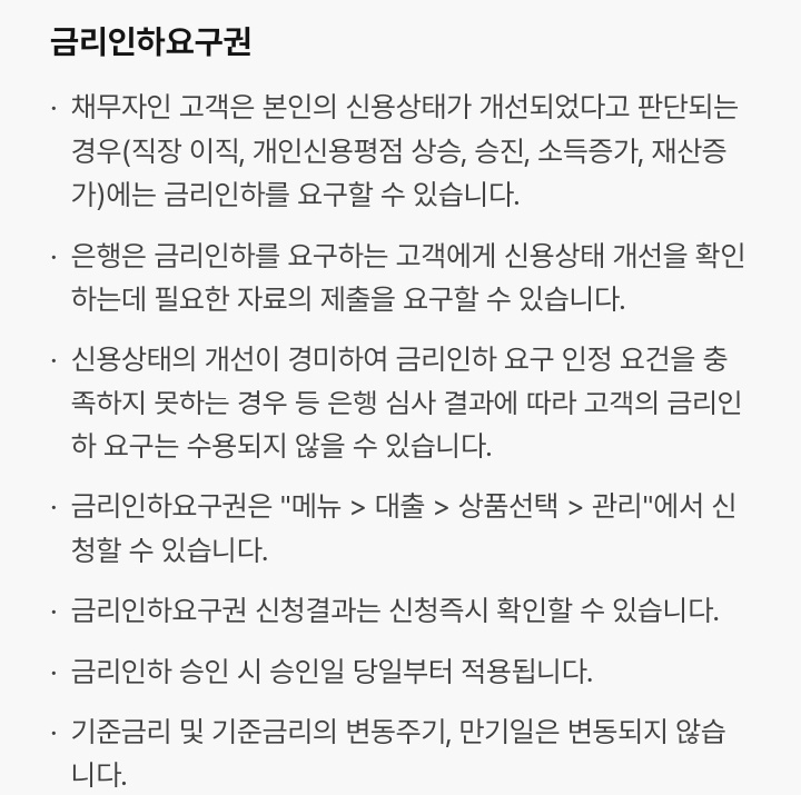 대출금리는 기준금리 + 가산금리를 적용하며 아래와 같습니다.
