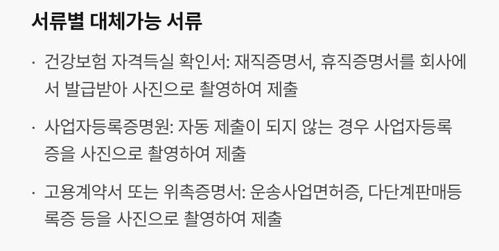 자동제출서류는 공동인증서를 활용하여 정부24, 국세청 등 정부기관으로부터 자동으로 서류제출이 되는 서류들로 따로 신경쓸 필요는 없습니다.