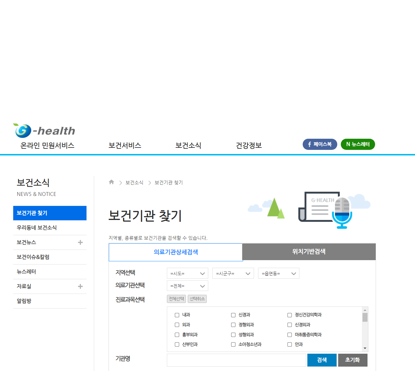 이 홈페이지에서 보건소뿐 아니라 병원도 내, 외과 별로 진료받을 기관도 찾아볼 수 있으며,