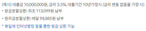 상환방법은 원(리)금균등분할상환방법이있습니다.