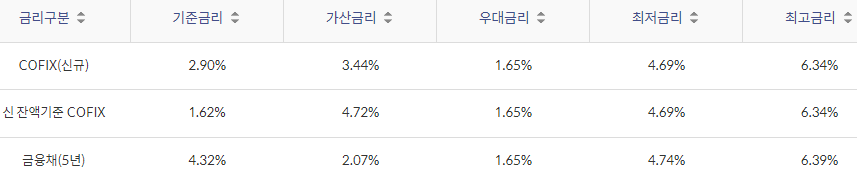 대출금리는 아래와 같습니다.