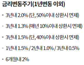 대출기간은 15년,20년,30년,35년,40년 가능하며 상환방법은 아래와 같습니다.