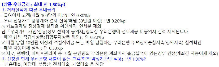 우대금리 조건은 아래와 같습니다.