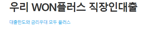 우리은행 신용대출 상품의 이름은 '우리WON플러스 직장인대출'로 방문없이 간편하게 스마트폰 App을 통해 신청이 가능합니다.