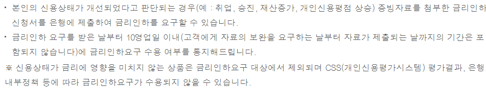 - 연소득3천 5백만원 이하 또는 신용평점 하위20%이하일 경우 연소득 4천5백만원 이하까지 가능