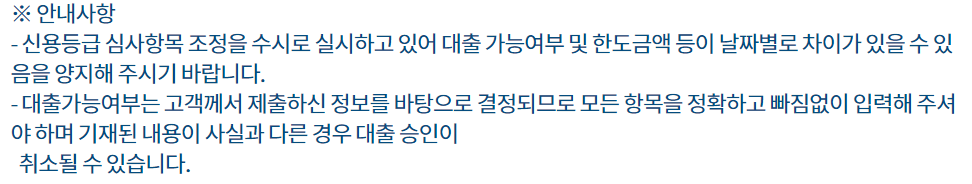 또한 신용평가 시스템에 의해 승인을 받아야하기 때문에 신청을 해봐야 정확한 한도 및 금리가 나옵니다.