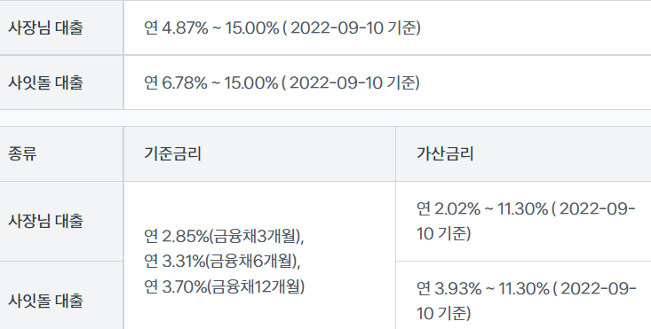 토스뱅크는 사장님 대출 및 사잇돌 대출 두가지로 둘다 개인 사업자 대출입니다.