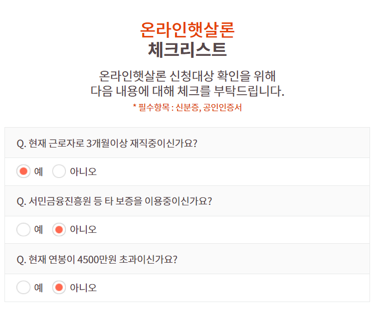 위 체크리스트에 해당하면 신청이 가능합니다.