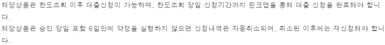 위에 적혀 있듯이 대출 한도 조회 후 당일 신청기간을 통해 신청까지 완료하셔야 가능합니다.