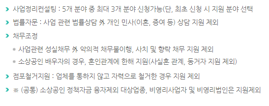- 지원내용 : 임대차,신용,노무,가맹,세무 등에 대한 법률자문