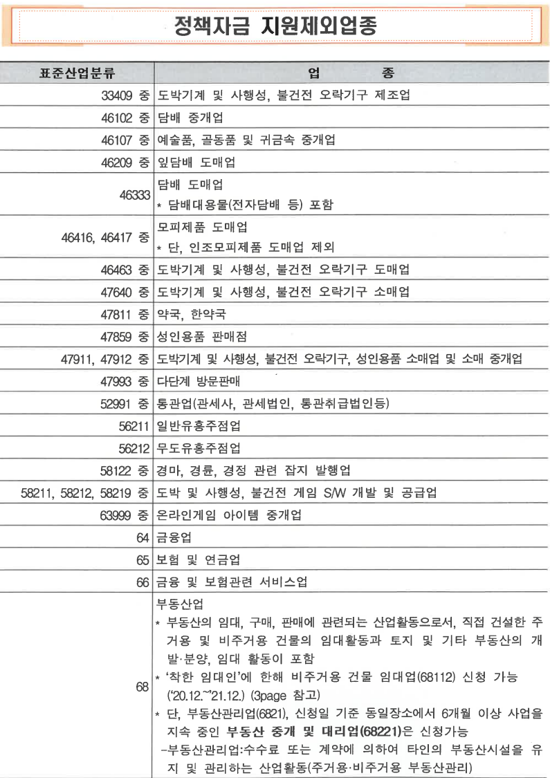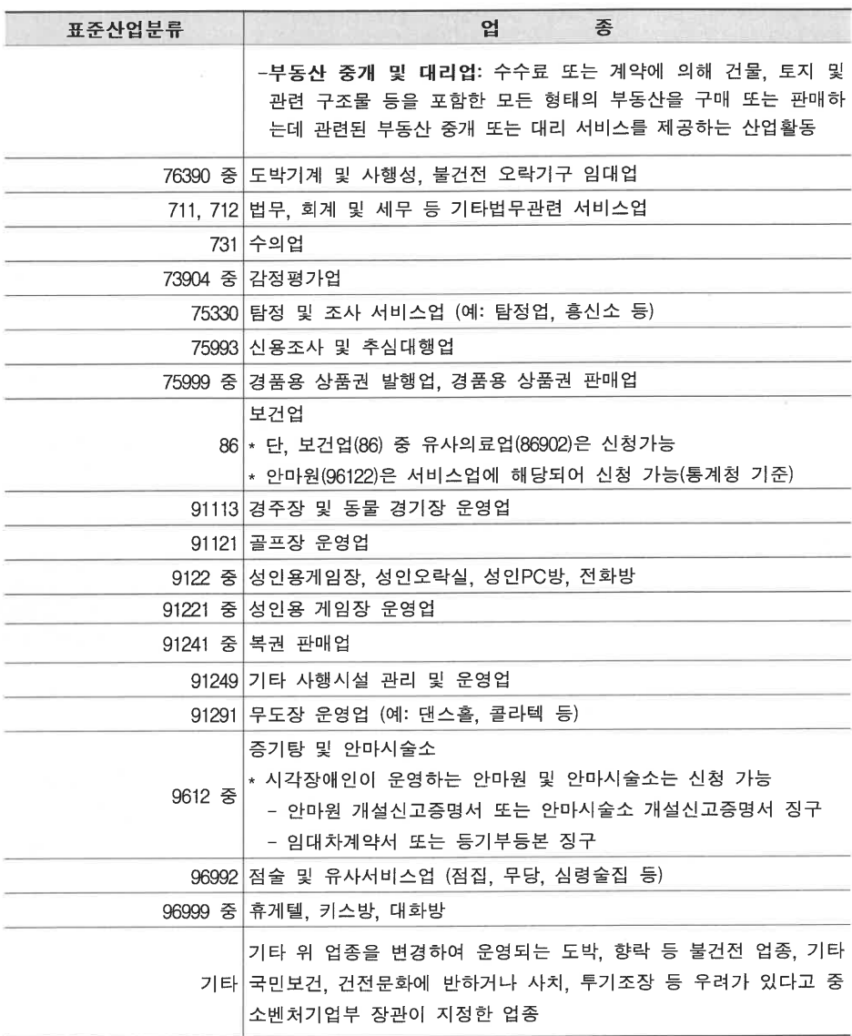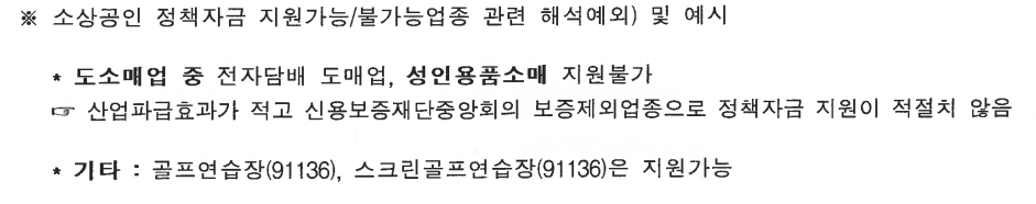 - 소상공인정책자금 지원제외 업종에 해당하지 않는 경우