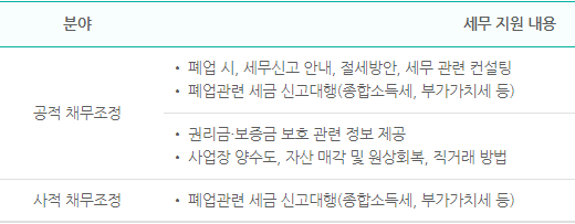 - 지원분야 : 세무,부동산 등 5개 분야에 대한 자문 제공
