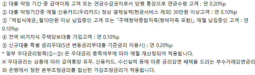 대출 최종 적용 금리는 기준금리 + 가산금리 - 우대금리를 적용하며 우대금리는 최대 연 0.6%까지만 가능합니다.