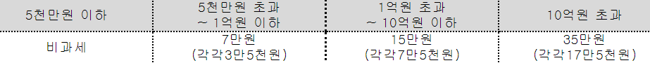 인지세는 인지세법에 따라 대출 신규 약정 시 내는 세금을 5천만원 이하까지는 비과세이며 5천만원 초과부터는 아래 대출금액에 따른 세액이 차등적용되며 인지세는 은행과 고객이 각각 50%씩 부담합니다.