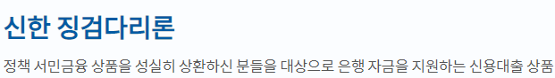 신한은행 징검다리론 상품은 정책 서민금융 상품을 성실히 상환하신 분들이라면 가능한 신용대출 상품으로 정책서민 금융상품을 이용했던 사람이면 가능한 상품이니 이용하지 않았던 분들은 글 하단의 다른 금융정보를 참고 하시길 바랍니다.