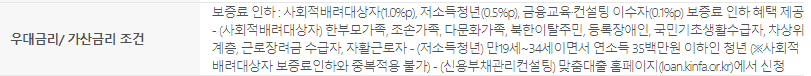 - 저소득 청년의 경우 0.5% 인하(단 사회적 배려대상자와 중복적용은 불가)