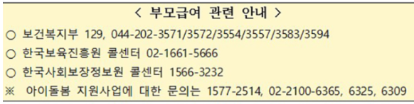 서비스 대상은 2022년 1월 1일 이후 출생한 만 0~1 세 아동을 지원하며 만 2세 이후부터는 가정양육수당을 지원하는 점 참고 하시기 바랍니다.(별도의 소득인정액 기준 없음)