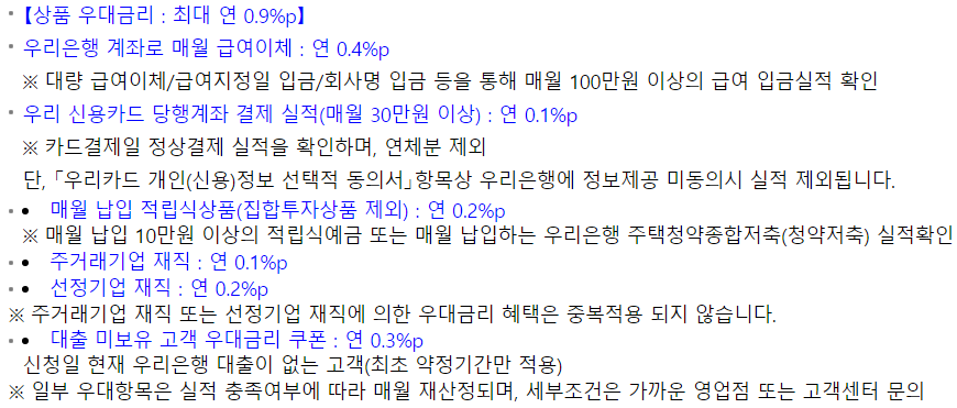 대출금리 및 우대금리 조건