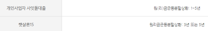 햇살론 15는 원리금균등분할상환만 가능합니다.