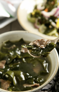 미역: 미역은 불용성 섬유질이 많아 배변활동을 원활하게 해주고 소화기능을 개선시켜줍니다.