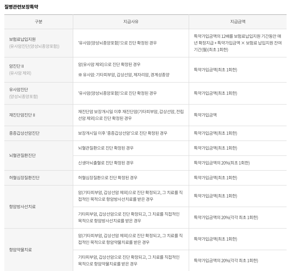 | 암치료비 | 암 진단 시, 1회 100만원, 최대 3회 |